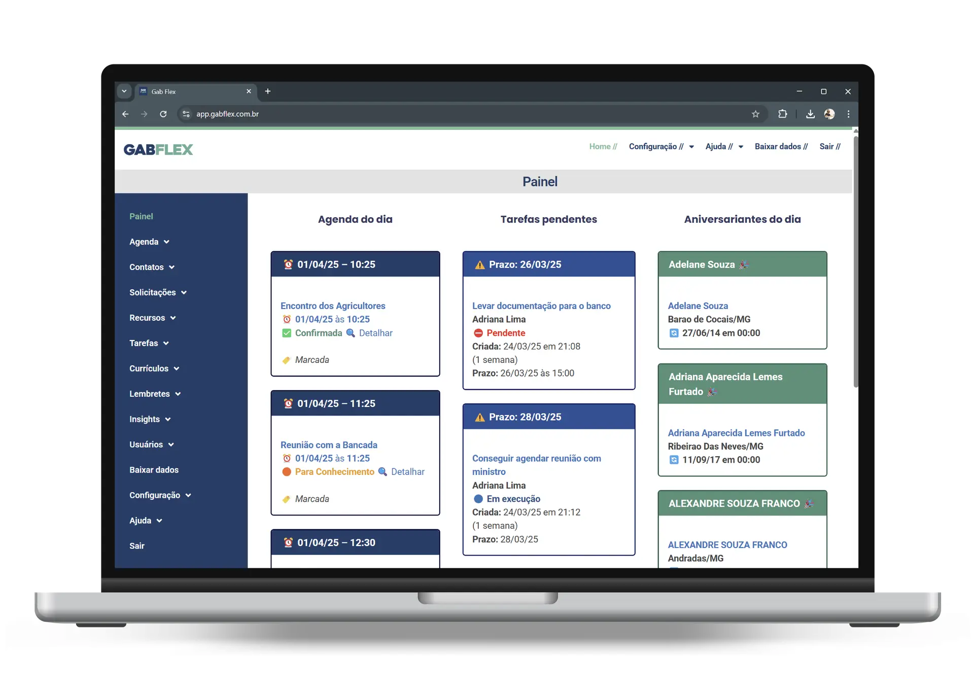 Acompanhe os alertas de aniversariantes do dia e do mês.